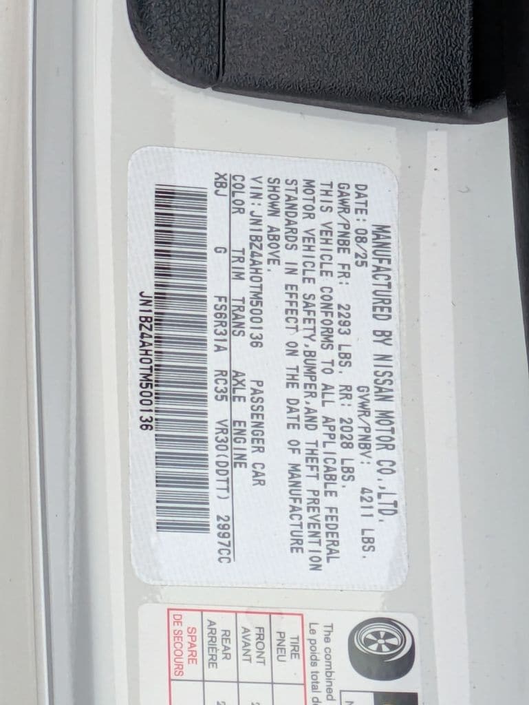 Pearl White/Super Black 2026 Nissan Z Sport RWD 6-Speed Manual 3.0L V6