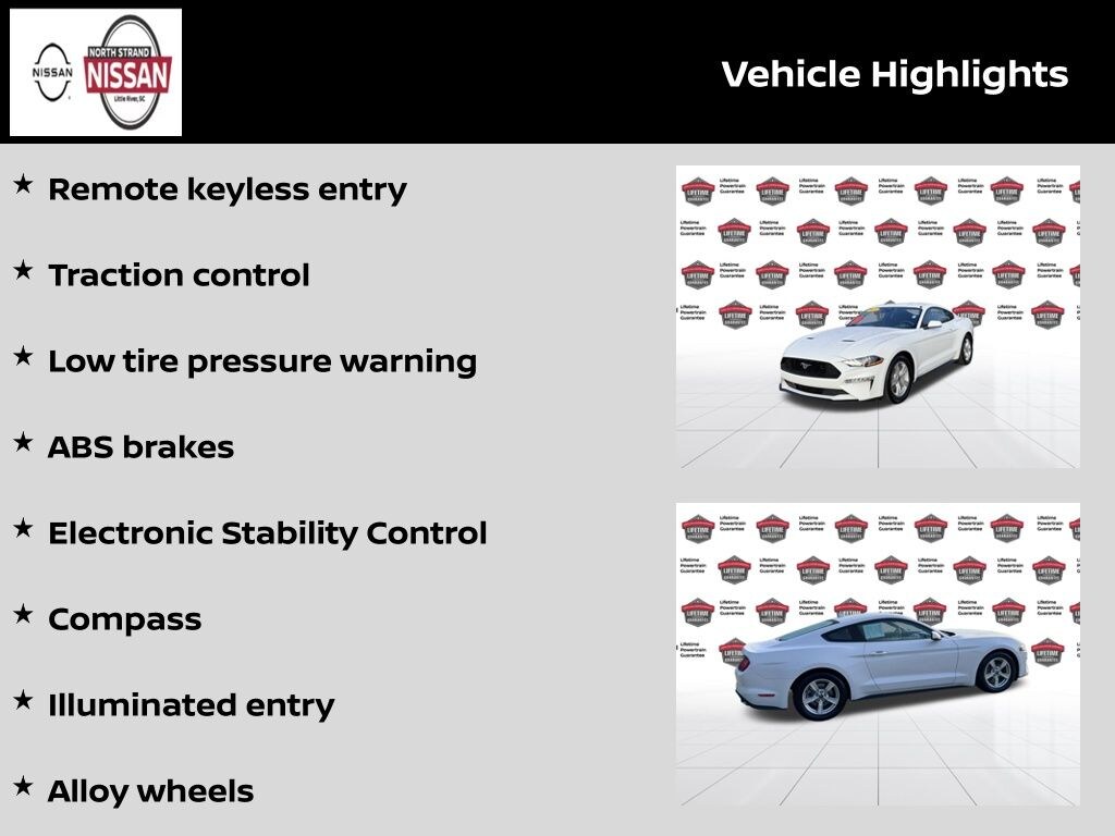 Clean CARFAX. ABS brakes, Alloy wheels, Compass, Electronic Stability Control, Illuminated entry, Low tire pressure warning, Remote keyless entry, Traction control. 21/32 City/Highway MPG Oxford White 2021 Ford Mustang EcoBoost RWD EcoBoost 2.3L I4 GTDi DOHC Turbocharged VCT