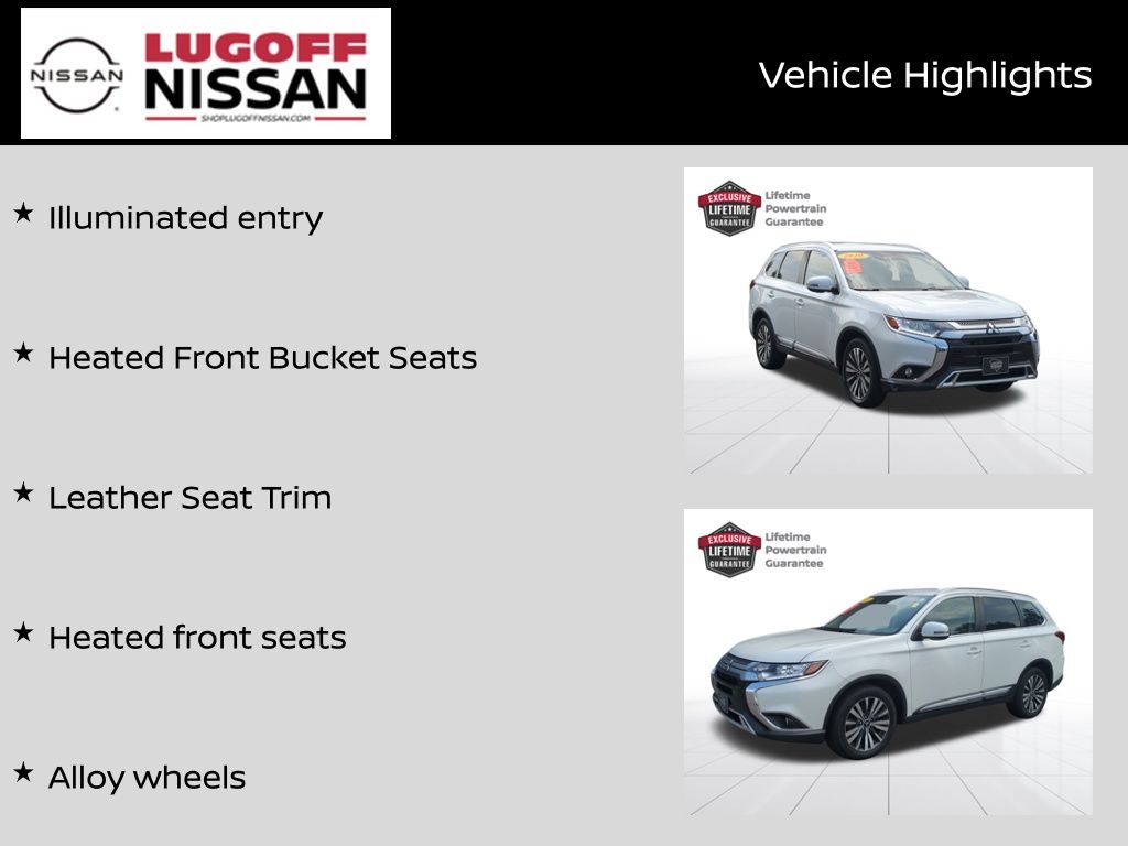 25/30 City/Highway MPG ABS brakes, Alloy wheels, Electronic Stability Control, Front dual zone A/C, Heated door mirrors, Heated Front Bucket Seats, Heated front seats, Illuminated entry, Leather Seat Trim, Low tire pressure warning, Power Liftgate, Remote keyless entry, Traction control. 2020 Mitsubishi Outlander SEL FWD CVT I4