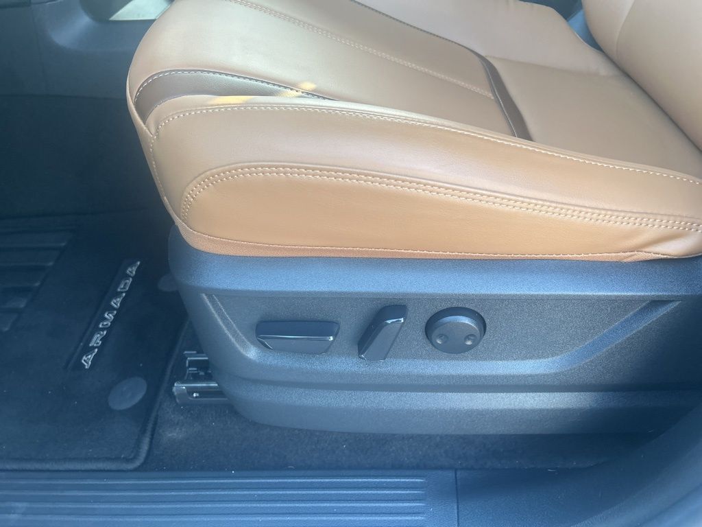 The Armada's stunning Silver exterior is complemented by a wealth of premium features, including a power liftgate, auto-leveling suspension, and a 3D Around View Monitor for enhanced visibility and maneuverability. Inside, the spacious cabin offers seating for up to seven passengers, with the available Captain's Chair Seat Package providing exceptional comfort and versatility.