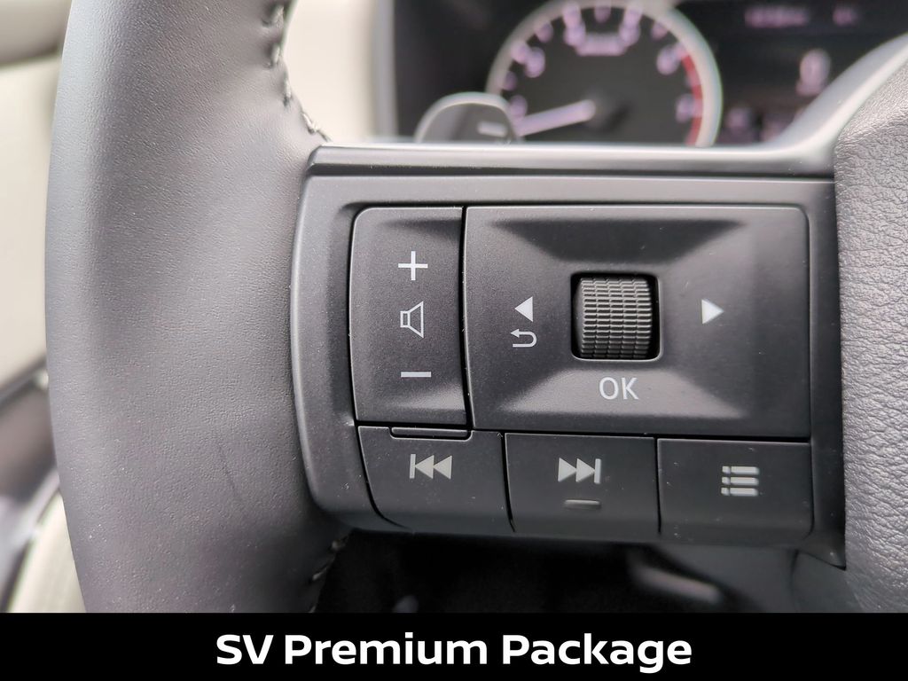 Elevate your driving experience with the premium features of the SV Premium package, including the panoramic moonroof, heated steering wheel, and leatherette-trimmed seating. The Rogue's sophisticated interior and advanced technology will keep you connected and entertained on every journey.